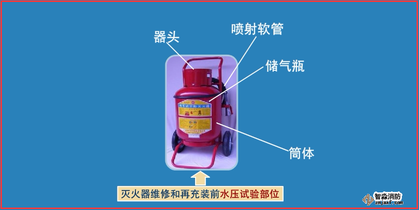 (2)二氧化碳滅火器再充裝時,不得采用加熱法,也不得以壓力水為驅動力將二氧化碳滅火劑從儲存氣瓶中充裝到滅火器內。