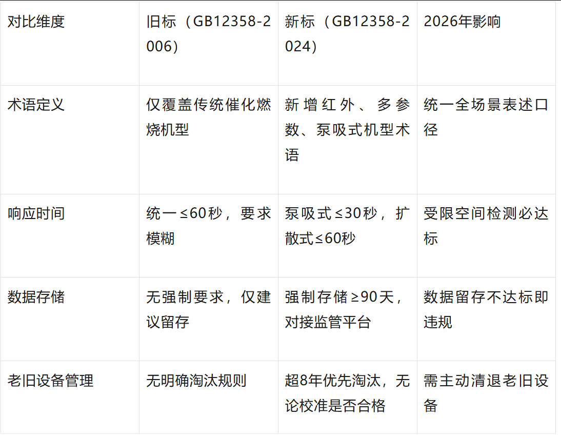 氣體探測器現(xiàn)行國標新舊對比,2026年合規(guī)必看