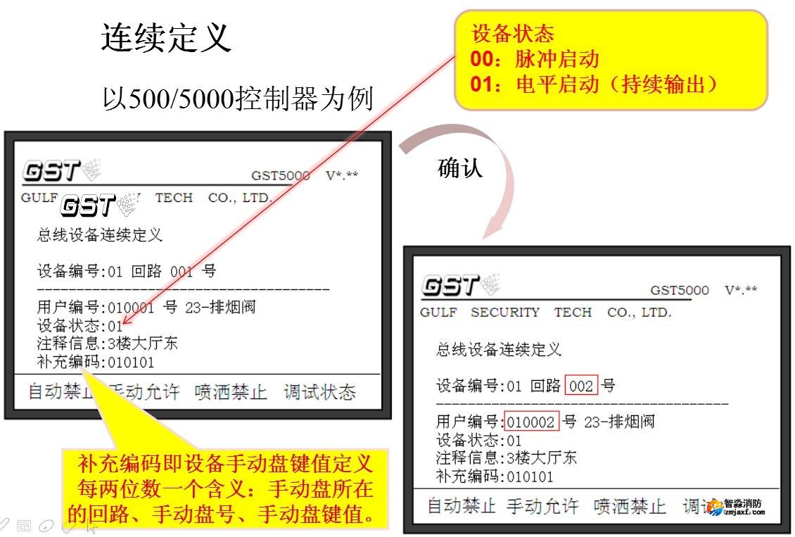 控制器所接的可編址外部設備均需進行編碼設定,每個設備對應一個原始編碼(一次碼,如下圖紅色數(shù)字)和一個用戶編碼(二次碼,如下