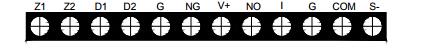 布線要求:信號(hào)總線Z1、Z2采用阻燃RVS型雙絞線,截面積≥1.0mm2;電源線D1、D2采用阻燃BV線,截面積≥1.5mm2;G、NG、V+、NO、COM、S-、I采用阻燃RV線,截面積≥1.0mm2。