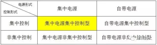 消防應急照明和疏散指示系統按控制形式分為集中控制和非集中控制,應急電源的實現方式有集中電源和非集中電源。所以就有4類系統形式: