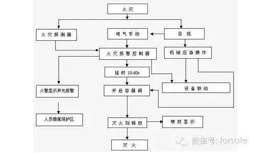 海灣氣體滅火系統同時具有自動控制,手動控制和機械應急操作三種啟動方式,操作程序如下: