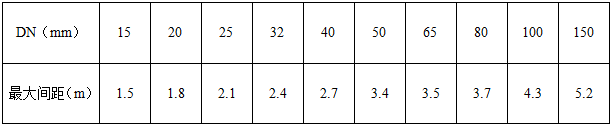 監理工程師熟悉圖紙并對照現場復核管路走向,發現問題及時給予設計研究解決。檢查預留預埋是否正確;臨時剔鑿應與設計,土建協調好。監理工程師檢查無誤后,方可開始管道支吊架安裝。支吊架的安裝應符合《氣體滅火系統施工及驗收規范》GB 50263-2007中的5.5.3條規定,管道支吊架安裝最大間距應符合下列規定: