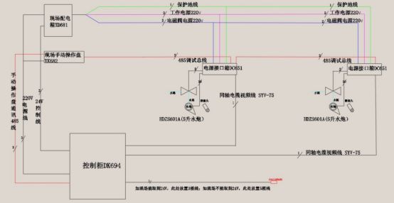 自動控制功能是通過控制滅火控制器24V控制線完成,24V控制線通過現場配電箱XD681對電磁閥電源線進行控制而實現對電磁閥的控制。