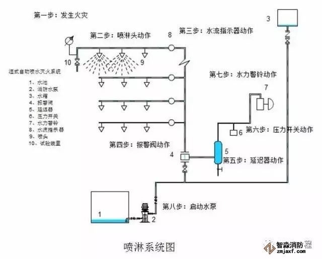 2. 濕式報警閥與水流指示有些不同,如果噴淋管道中如果水在流動,管道原有的靜壓會發生變化,會激發水力警鈴報警(它的原理可以參看一些閥門說明書),且壓力開關動作,從而來啟動噴淋水泵。