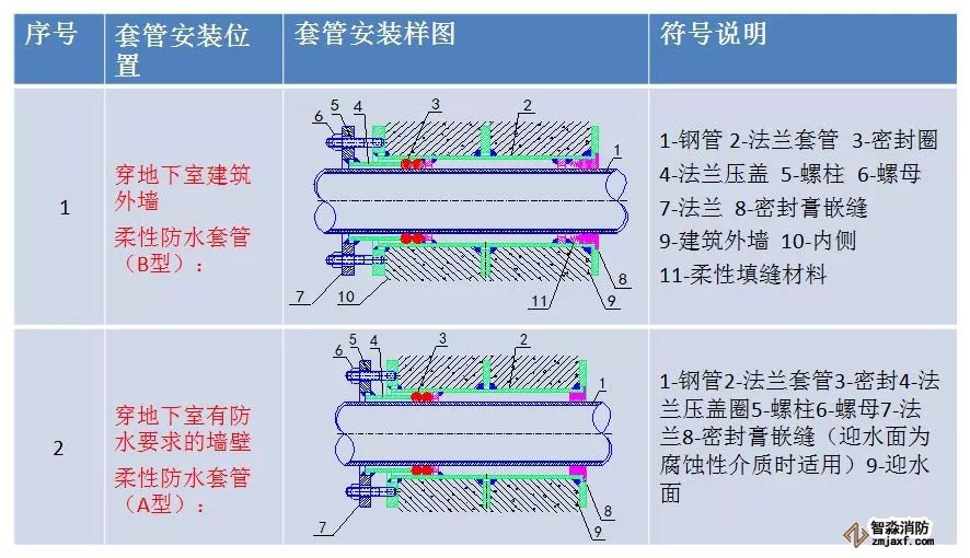 2、管道與套管間的環形縫隙應采用防水膠泥或無機填料嵌實