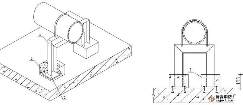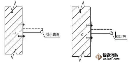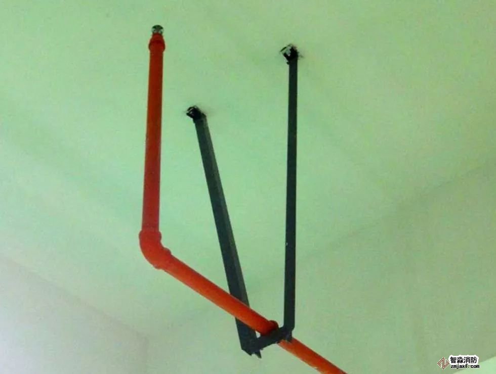 2、當噴淋支管高度大于1000mm時,應設橫向加強支架;末端支架與噴頭之間的距離為400mm