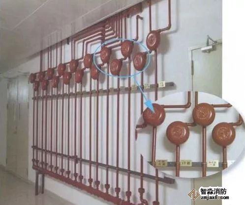 1、無吊頂時設置上噴頭;有吊頂時設置下噴頭,當吊頂上方悶頂的凈空高度超過800mm,且其內部有可燃物時,要求設置上噴頭;噴頭在系統沖洗試壓合格后安裝