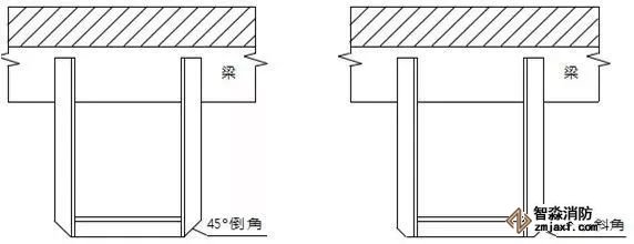 當梁、通風管道、排管、橋架寬度大于1.2 m時,增設的噴頭應安裝在其腹面以下部位;風管下噴頭吊架應采取管道延長至風管另外一端邊緣,并在延伸管道末端設置吊架
