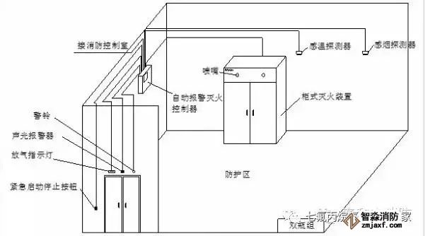 2)防護區外應設聲光報警器,建議安排在防護區疏散出口的門楣上方。