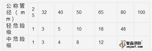 (2)輕危險級、中危險級場所中配水支管、配水管控制的標準噴頭數,不應超過表5一1的規定。