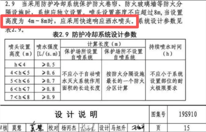5.0.15 當(dāng)采用防護冷卻系統(tǒng)保護防火卷簾、防火玻璃墻等防火分隔設(shè)施時,系統(tǒng)應(yīng)獨立設(shè)置,且應(yīng)符合下列要求: