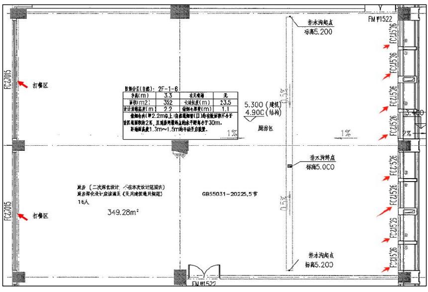 案例1:某項目建筑面積大于50m2,無可開啟外窗且經常有人員停留的房間未設置排煙設施,不滿足規范要求。如下圖所示。